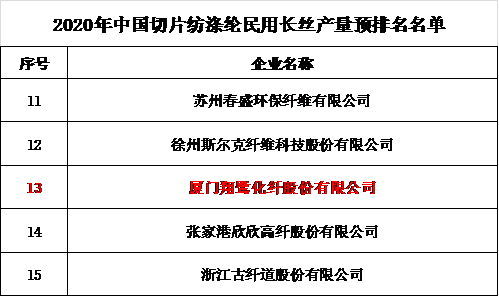 2020年中國切片紡滌綸民用長絲產量預排名名單