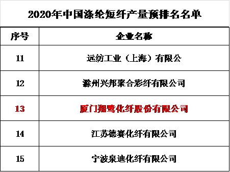2020年中國滌綸短纖產量預排名名單